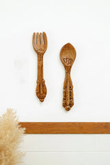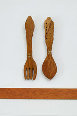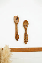 Add a touch of charm to your kitchen with our handcarved teak wood spoon fork set! Perfect for enhancing your kitchen wall decor with elegance and style.