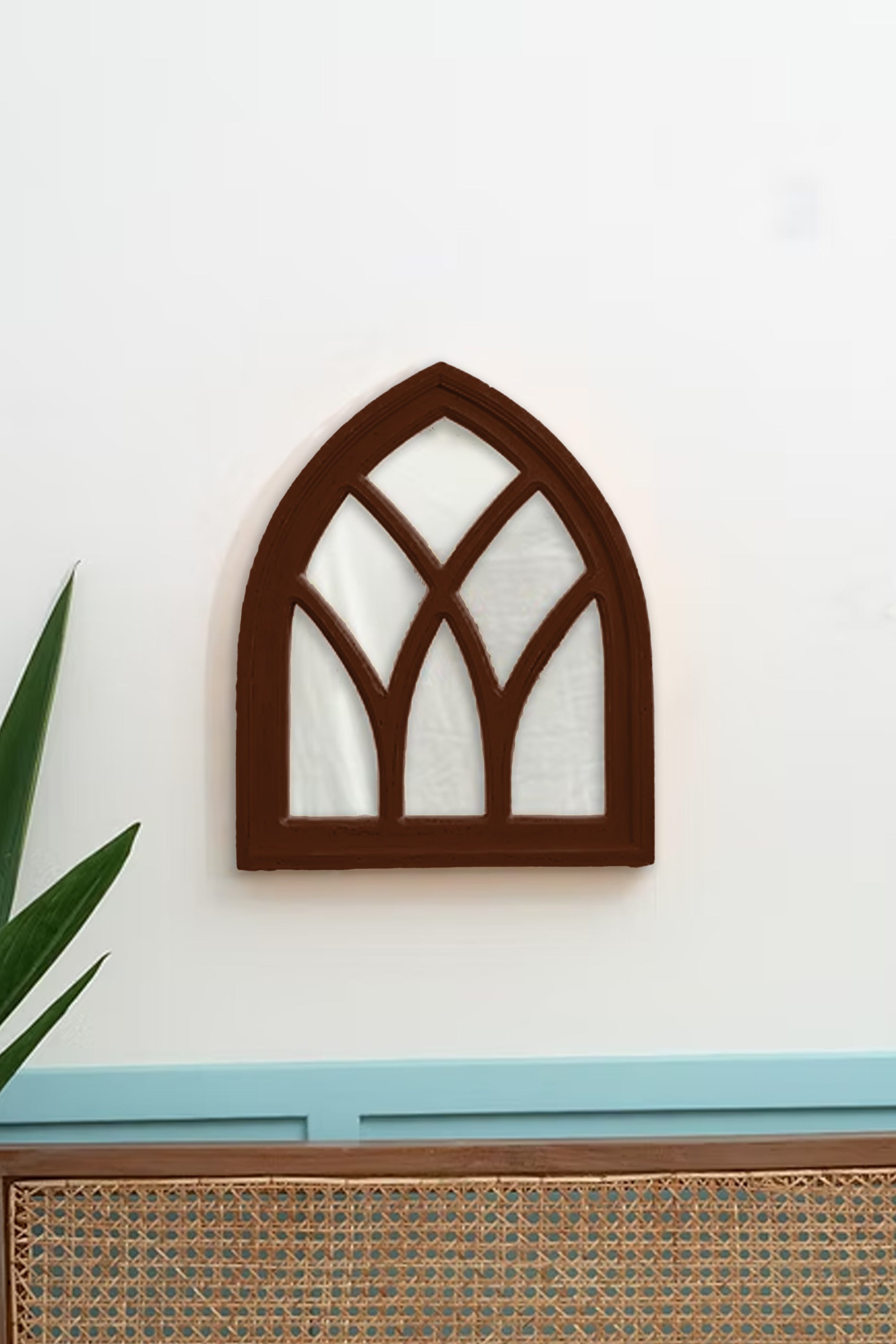 Our Designer Triangle Mirror seamlessly blends artistry with a vintage aesthetic. Handcrafted with care from wood and adorned with intricate hand-painted details, this beautiful mirror frame is guaranteed to make a delightful addition to your space.