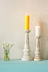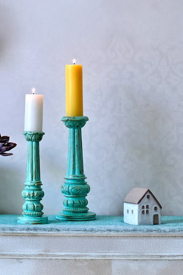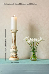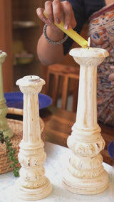 Experience the perfect blend of craftsmanship and vintage charm with our Hand Carved Candle Holder set. Crafted from teak wood, this exquisite art piece promises to add a touch of elegance to any corner of your home. Place them on your desk, bookcase, or coffee table to effortlessly achieve an elegant aesthetic.